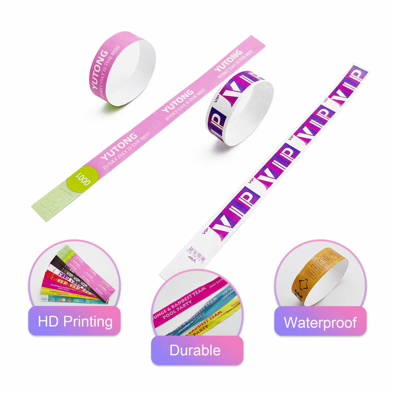 Ein weiterer beliebter Gebrauch für Yoya Print Tyvek Paper Wristbands ist als Wristband Controller Timer Bracelet.und andere Sehenswürdigkeiten, bei denen ein zeitlich begrenzter Eintritt erforderlich istDas langlebige Tyvek-Papier sorgt dafür, dass die Armbänder nicht zerreißen oder verblassen, selbst nach längerer Exposition gegenüber Wasser und Sonne.